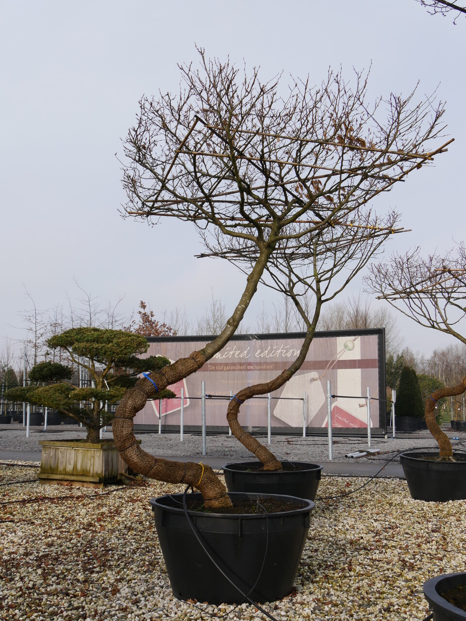 Мы предлагаем деревья SWING из Platanus x hispanica (платан) и Carpinus betulus (граб), так как оба сорта хорошо зарекомендовали себя в качестве формовых деревьев и отлично подходят для многих проектов. С осени 2020 года мы добавили в ассортимент деревьев SWING Parrotia persica (парротия персидская) с прекрасным осенним окрасом. Деревья SWING запатентованы. Их можно приобрести только в питомнике Van den Berk.