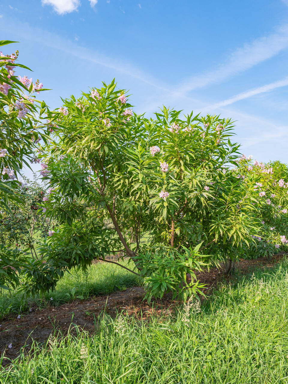 Chitalpa tashkentensis 'Summer Bells' can eventually reach a height of 5 - 8 m, depending on the site and climate conditions.