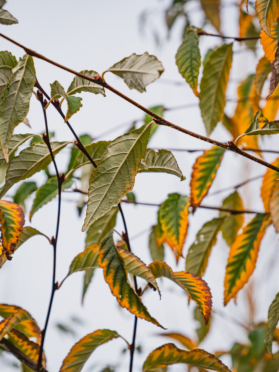 The leaves of Sorbus folgneri 'Emiel' turn оранжевый, красный in autumn.