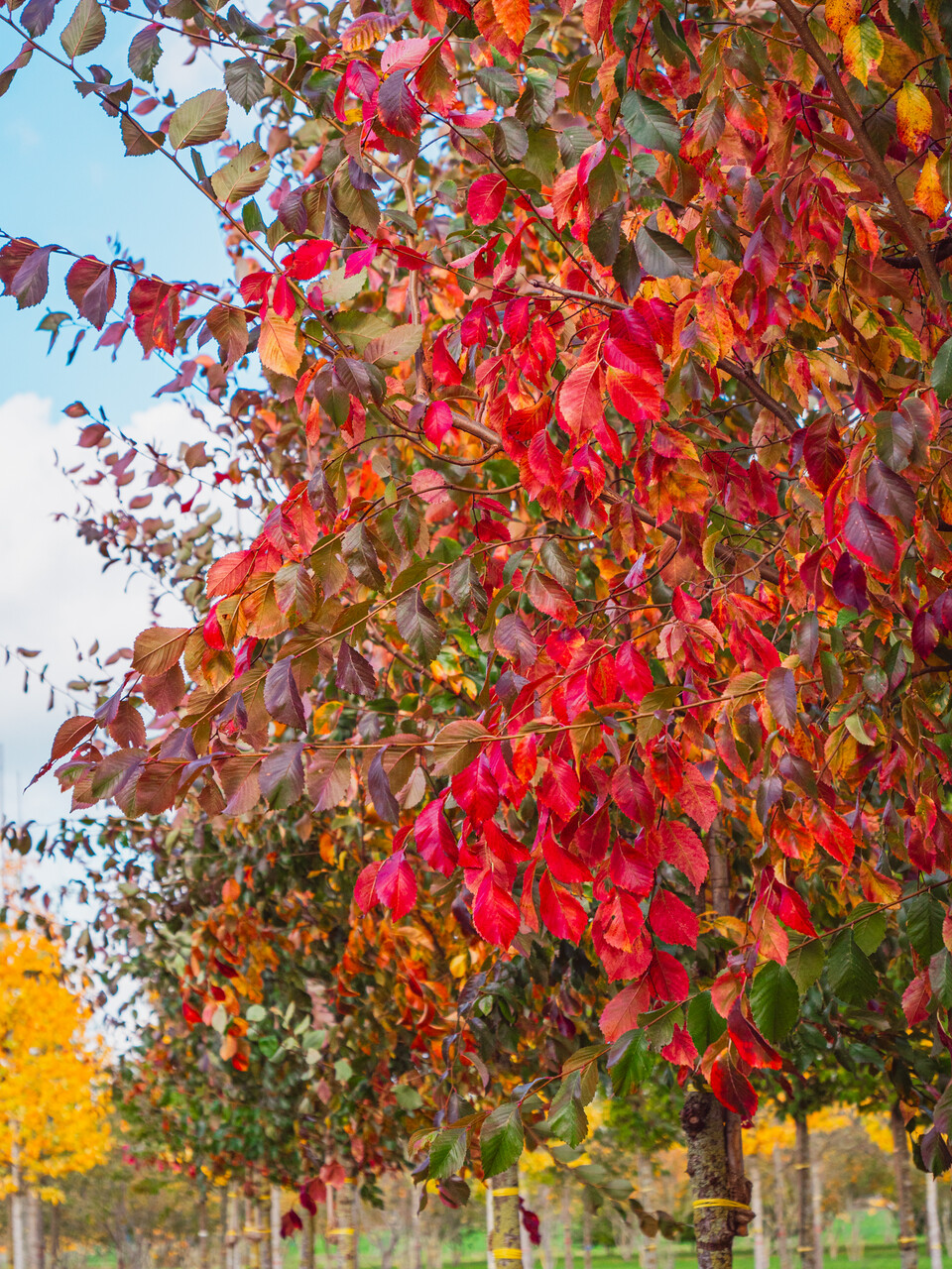 The leaves of Ulmus 'Frontier' turn красный in autumn.