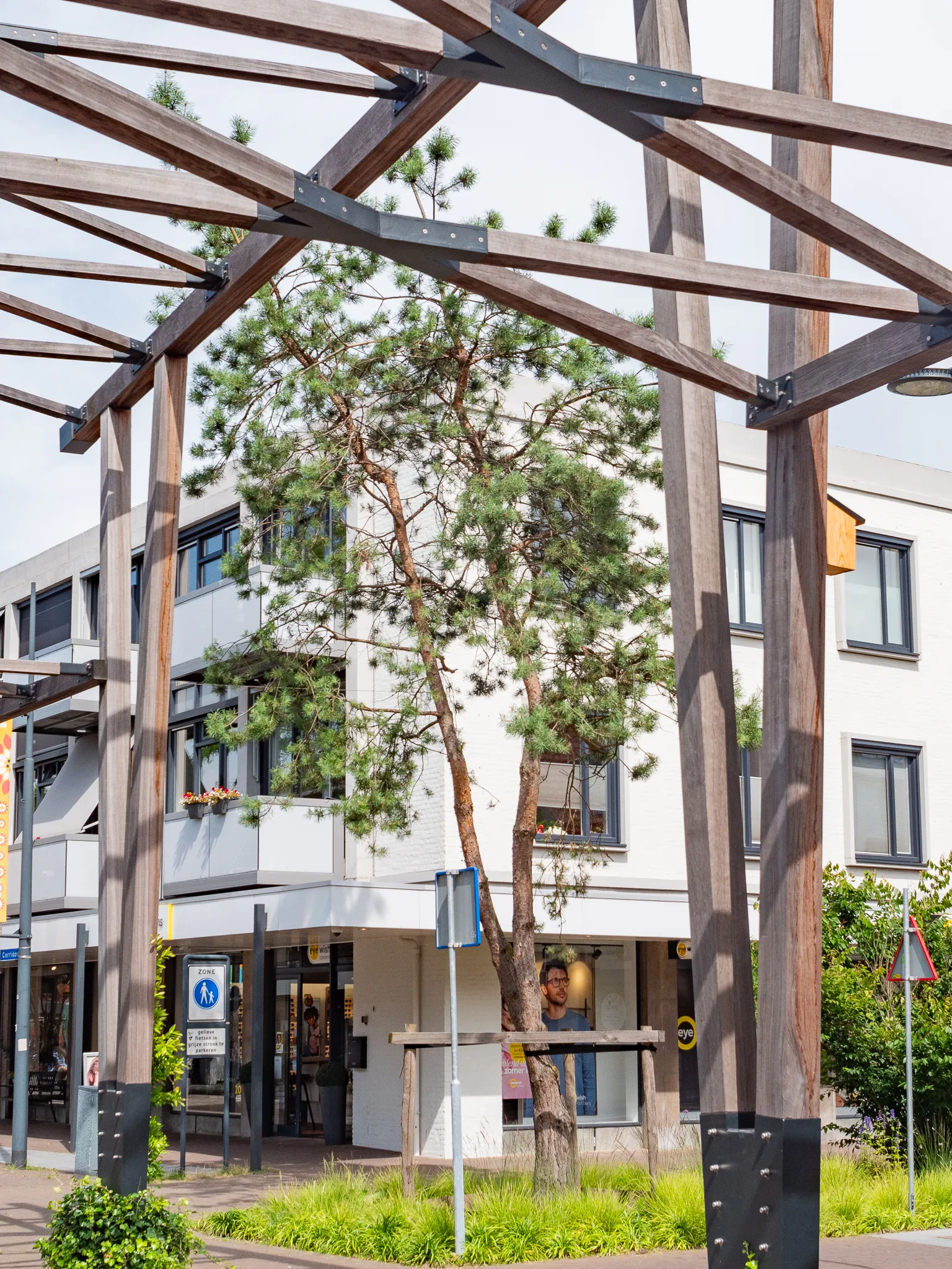 Кроме того, мы поставили различные многоствольные деревья, такие как Amelanchier lamarckii, Chionanthus retusus, Zelkova serrata ‘Urban Ruby’, Parrotia persica ‘Bella’ и Halesia carolina. Эти деревья варьируются по высоте от 200/250 см до 500/600 см и придают площади игривый, естественный вид.