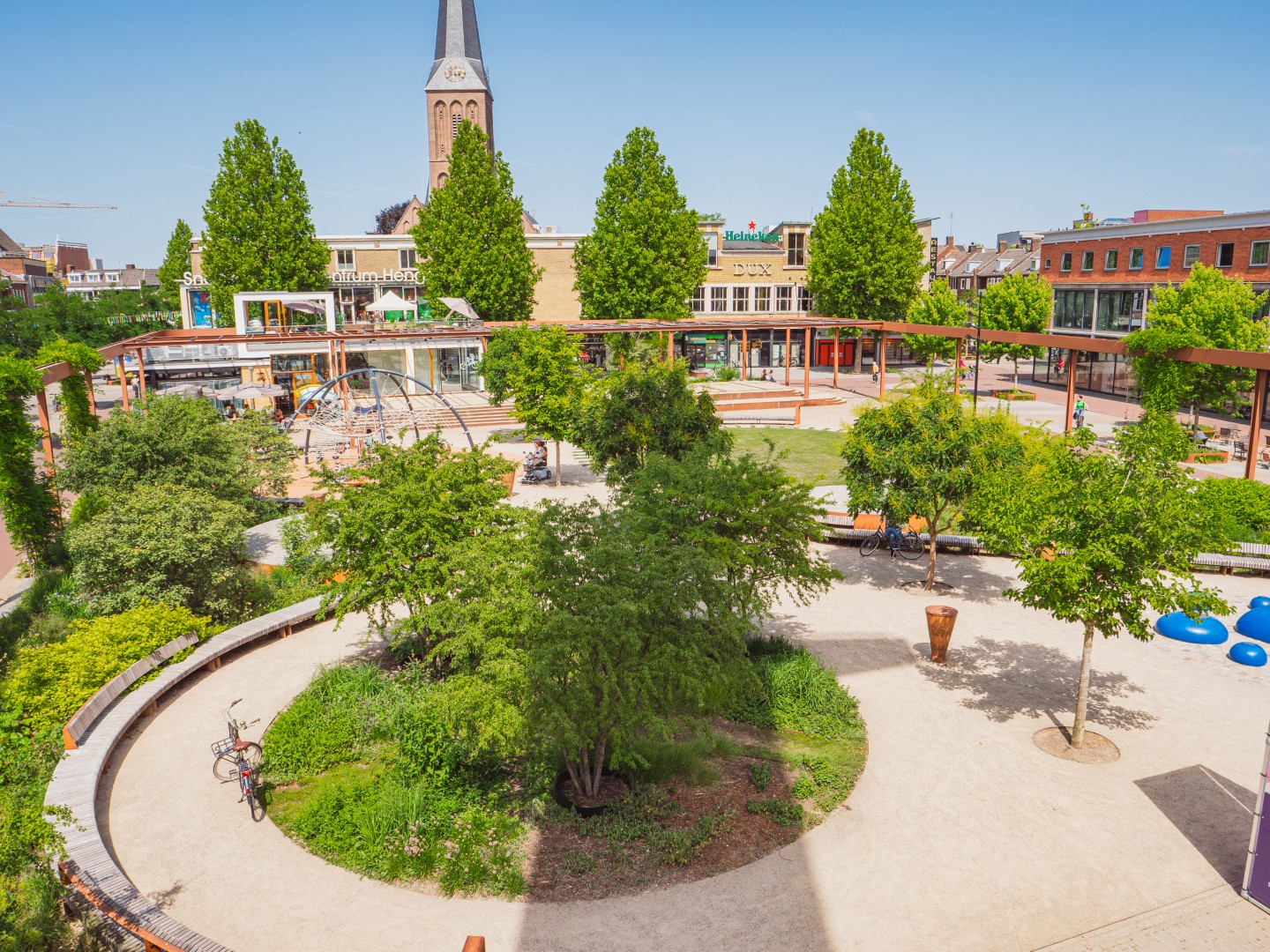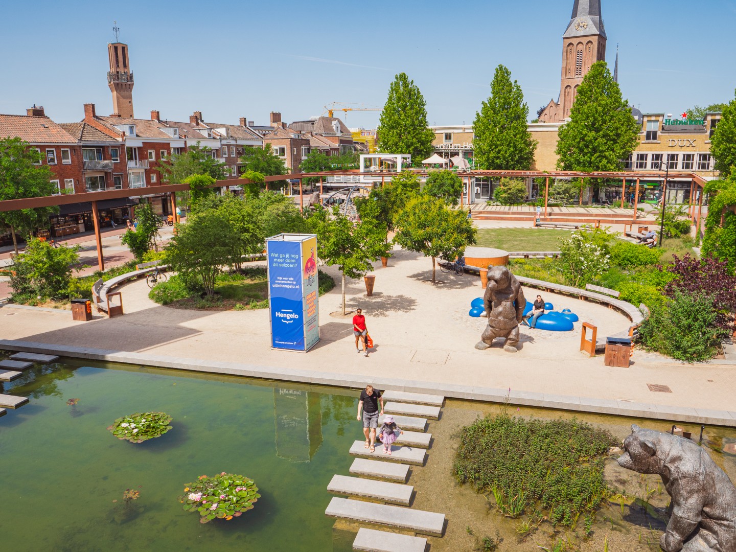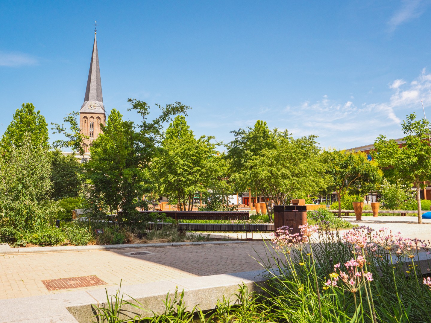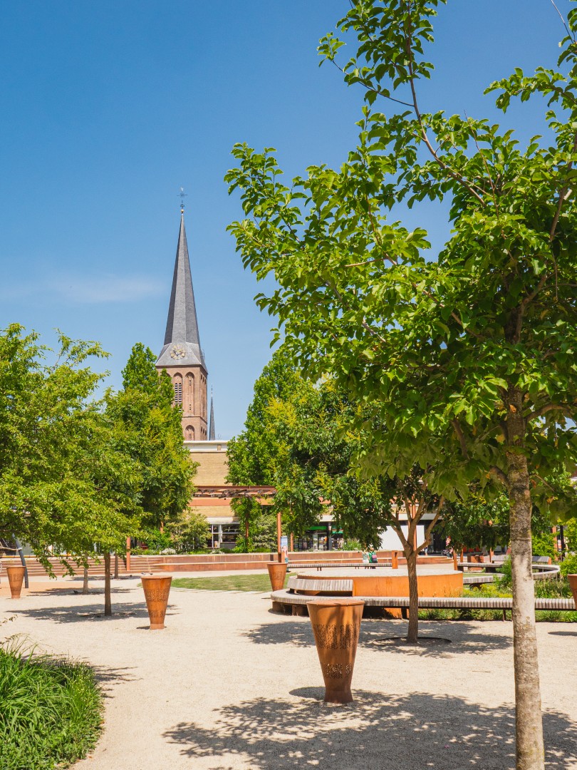 Рыночная площадь Хенгело была заново обустроена в 2023 году. Там, где раньше была пустая, мощеная площадь, теперь создано зеленое общественное пространство в рамках городской реконструкции. Для этого проекта были поставлены деревья с обхватом ствола 30–35 см и различные многоствольные деревья высотой до 300–400 см. Все деревья были установлены с системой водяных буферов.